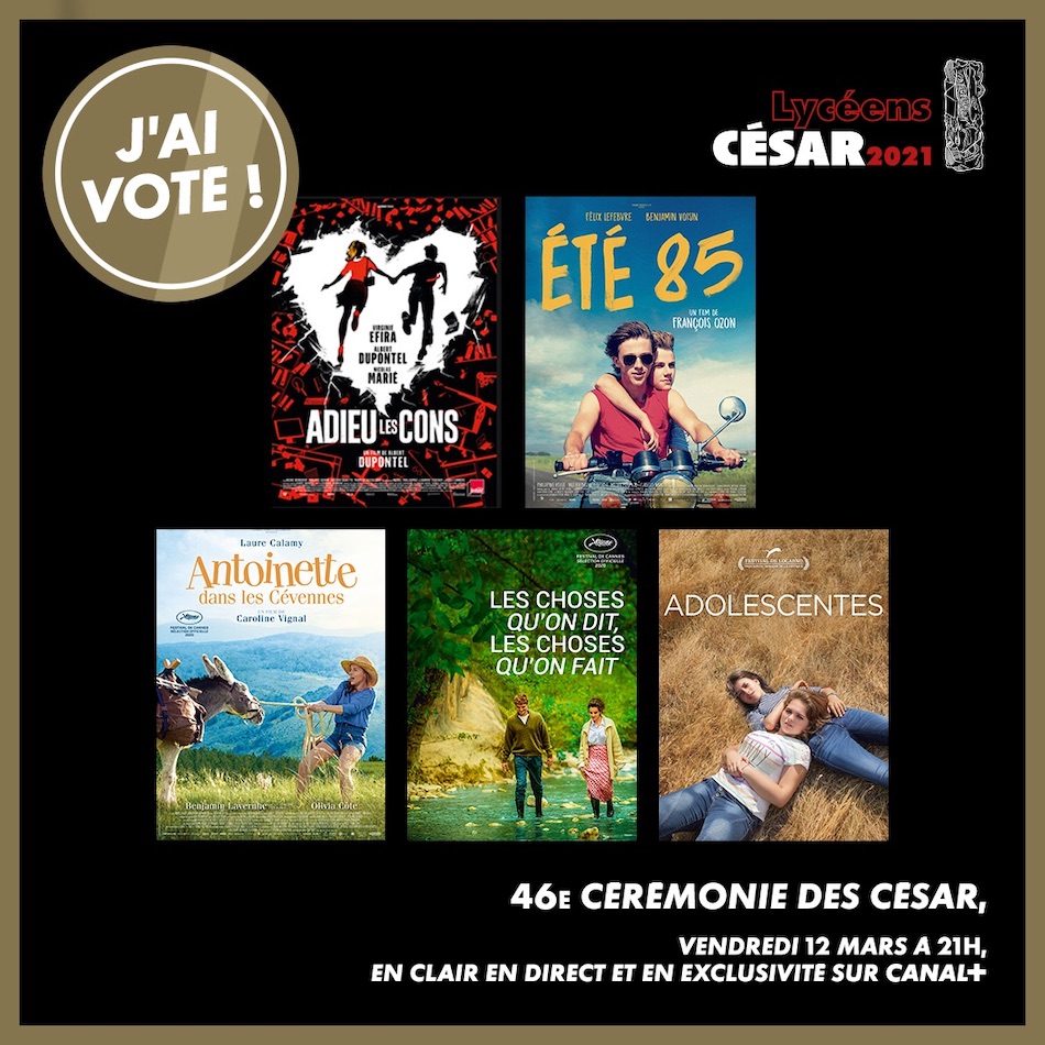 Les 23 élèves de terminale ont pris connaissance des films nommés le 13 février : Adieu les cons, d’Albert Dupontel, Adolescentes de Sébastien Lifchitz, Antoinette dans les Cévennes de Caroline Vignal, Les choses qu’on dit, les choses qu’on fait d’Emmanuel Mouret et Été 85 de François Ozon.