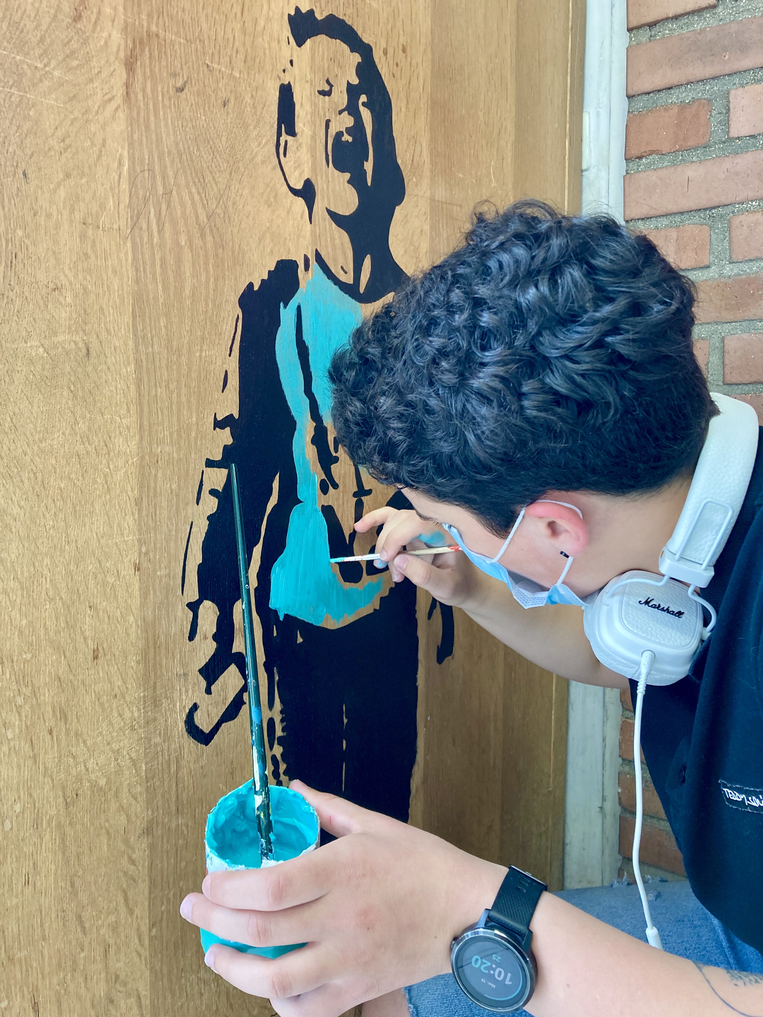 Dans le cadre de l’enseignement de spécialité arts plastiques, deux élèves de terminale, Mélinda Demarle et Chanelle Gaillard ont reproduit sur l’ancienne cabine téléphonique du hall des tables, une oeuvre street art réalisée par l’artiste canadien iHeart, et faussement attribuée à Banksy.