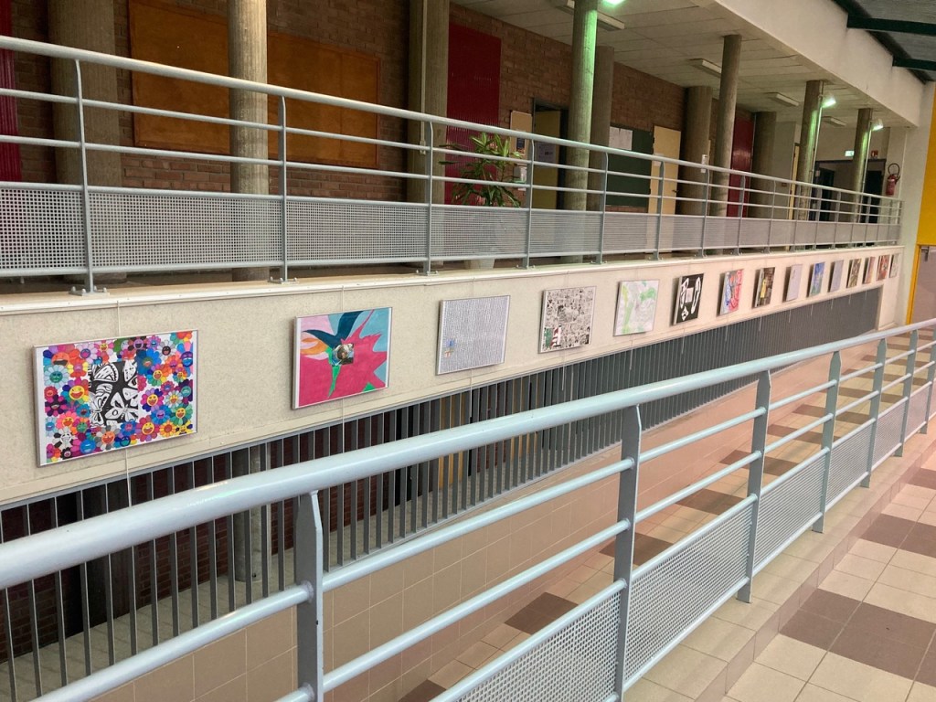 Clémence, Joris, Domitille, Karl, Margaux et Yohan, élèves de 1ère spécialité arts plastiques organisent la première exposition de l’année scolaire sur les cimaises de l’établissement.