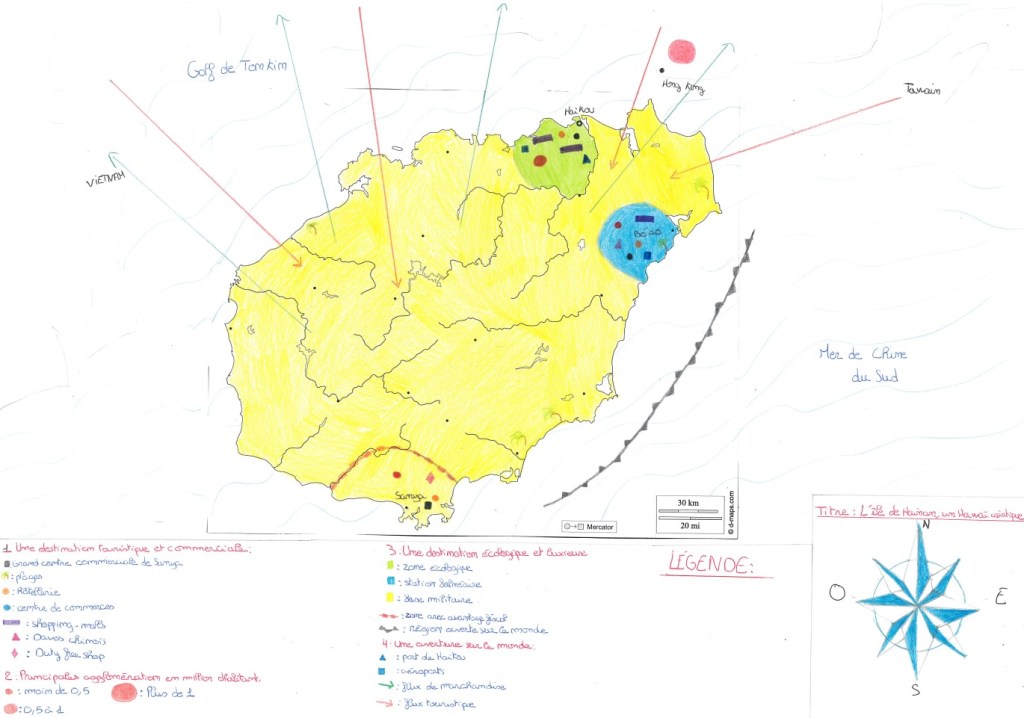 Il s’agissait de transformer en croquis un long article de presse, issu du Monde, sur l’île de Hainan, une île au sud de la Chine.