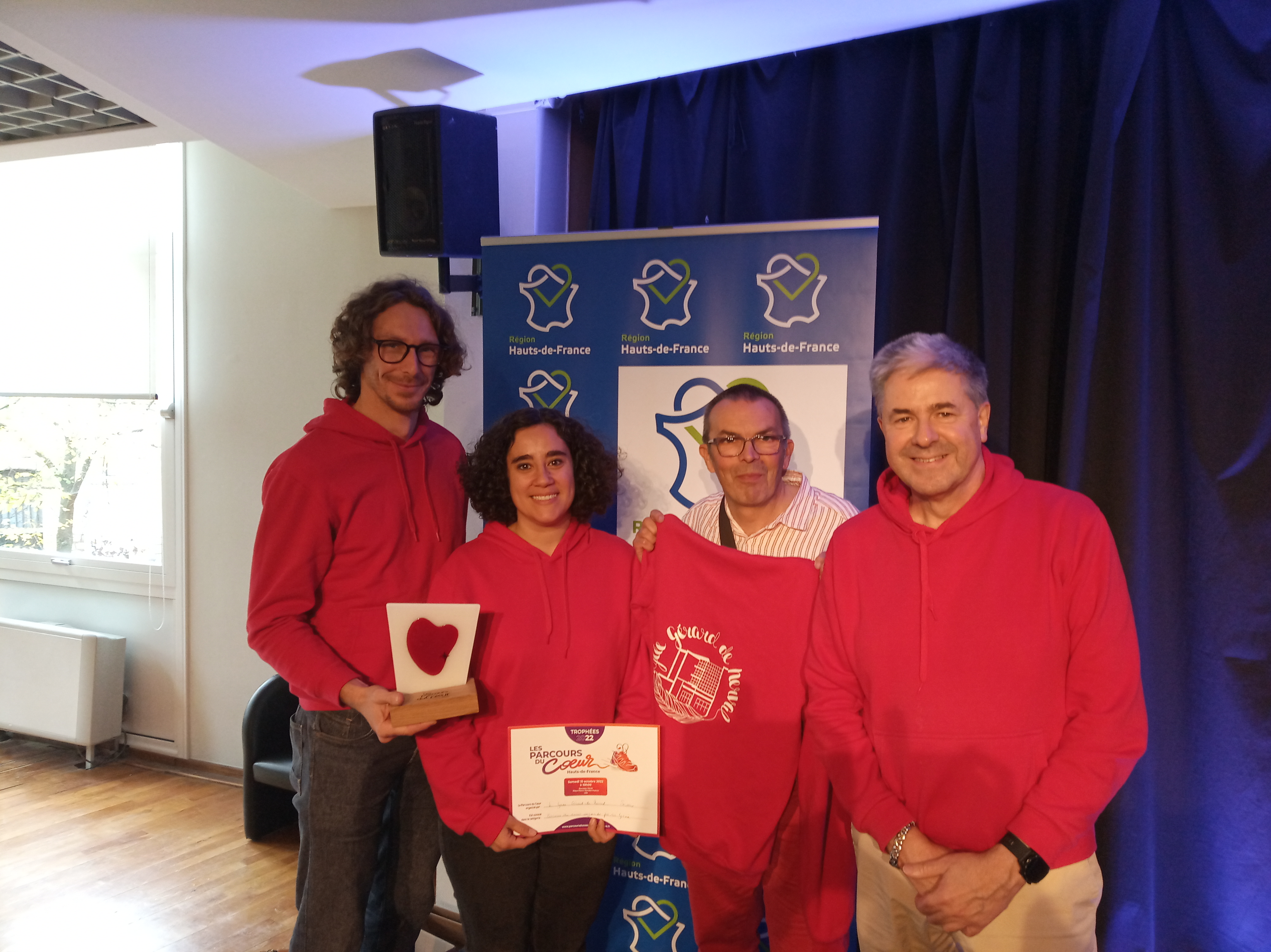 Samedi 15 octobre dernier, 20 Trophées Parcours du Coeur Hauts-de-France 2022 ont été remis à 20 Parcours du Coeur remarquables organisés au printemps 2022, en présence de nombreuses personnalités régionales, au Nouveau Siècle à Lille.