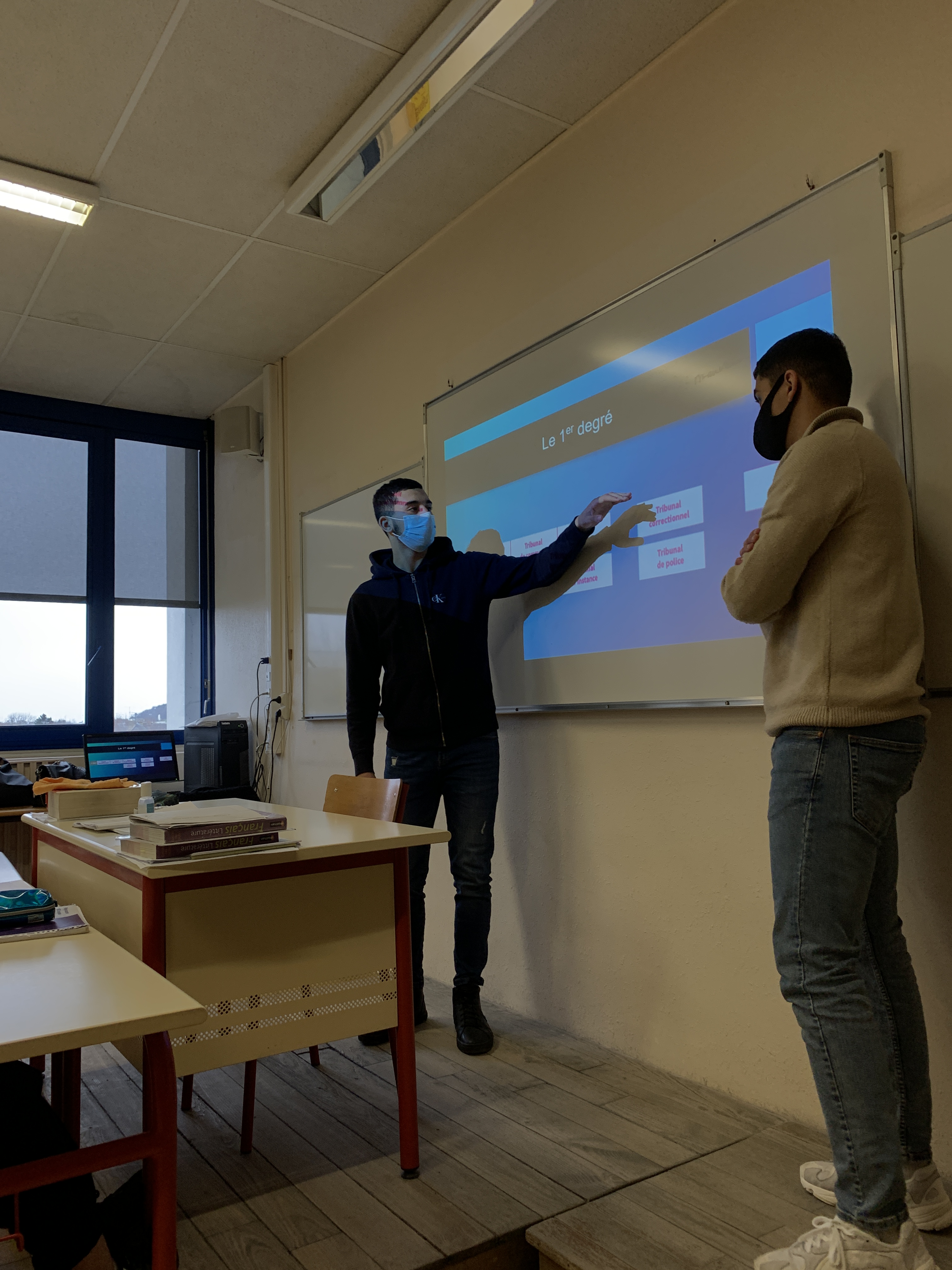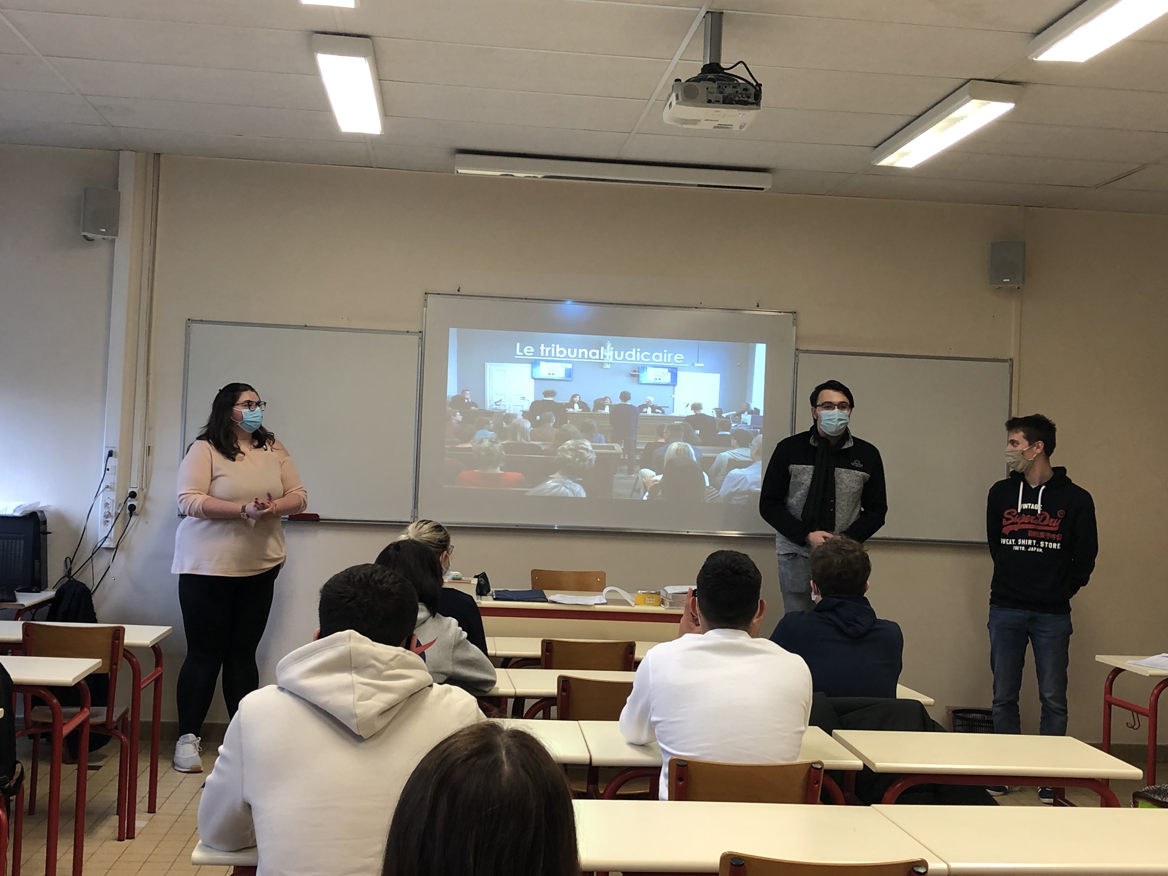 “Le 28 Janvier 2021 de 14 heures 30 à 16 heures, plusieurs groupes d’élèves de la classe de DCG 1 du lycée, sont venus nous présenter leur filière mais aussi nous faire découvrir l’univers du droit.