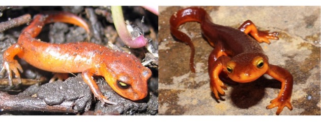 Document 2B : Photographie de gauche : La Salamandre E. e. xanthroptica ; photographie de droite : le Triton de Californie, Taricha torosa